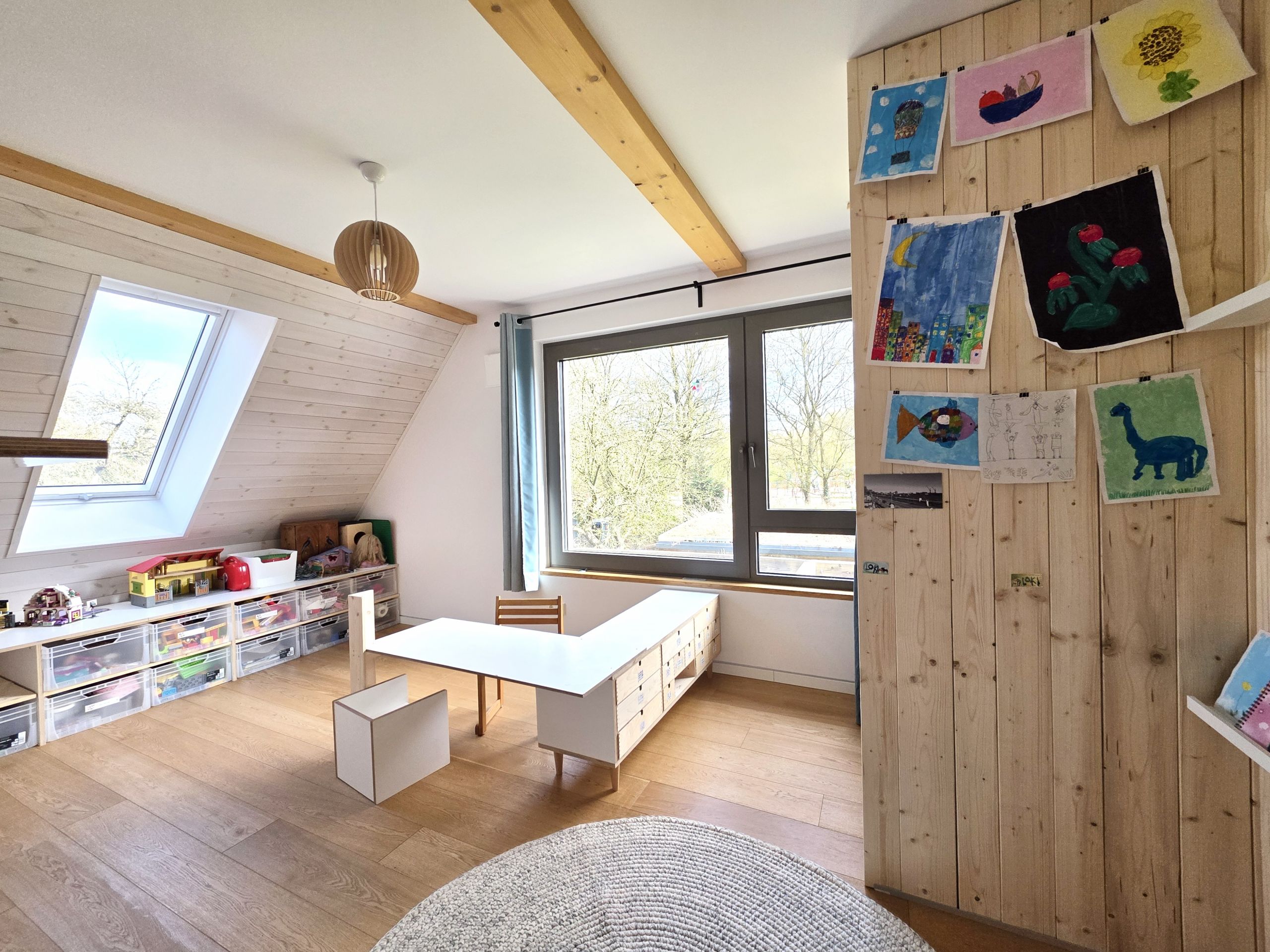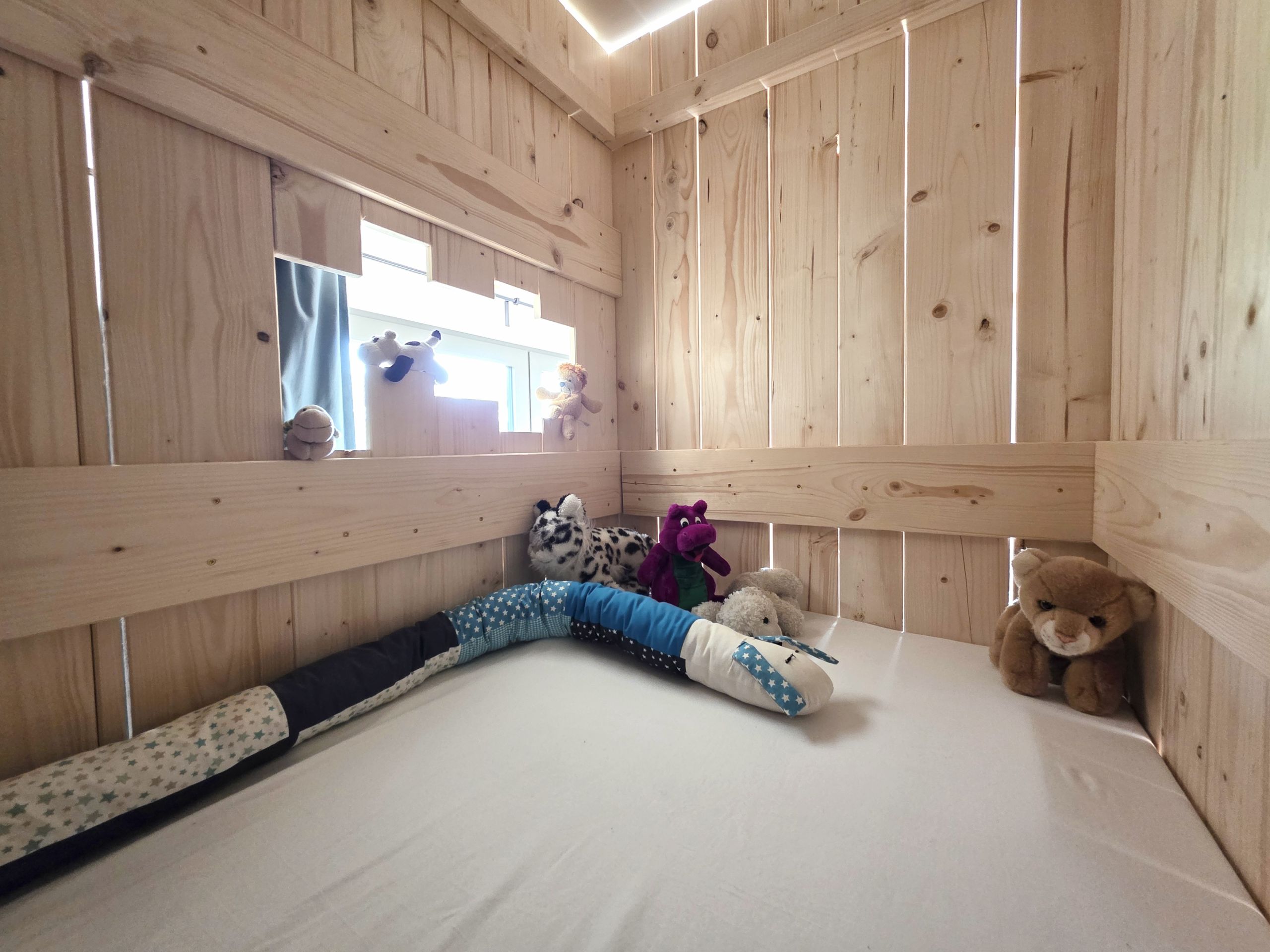 Das Erdgeschoss verfügt über Küche, Esstisch, WC und Sofabereich. Im 1.OG gibt es ein großes Kinderzimmer mit diversen Spielsachen und Klettergerüst. Im 2.OG ist das große Schlafzimmer mit Schreibtisch. Bitte lasse deine Kinder niemals unbeaufsichtigt klettern. Bitte beachte, das die Unterkunft keinen Fernseher hat. An dem privaten Garten führt ein Weg entlang, der auch von anderen wenigen Personen aus dem Haus benutzt wird.